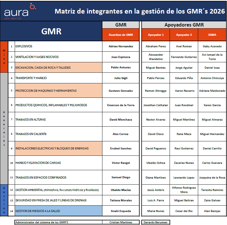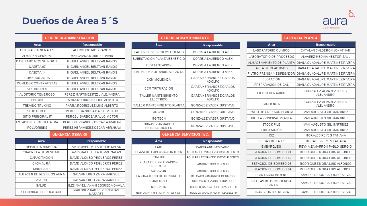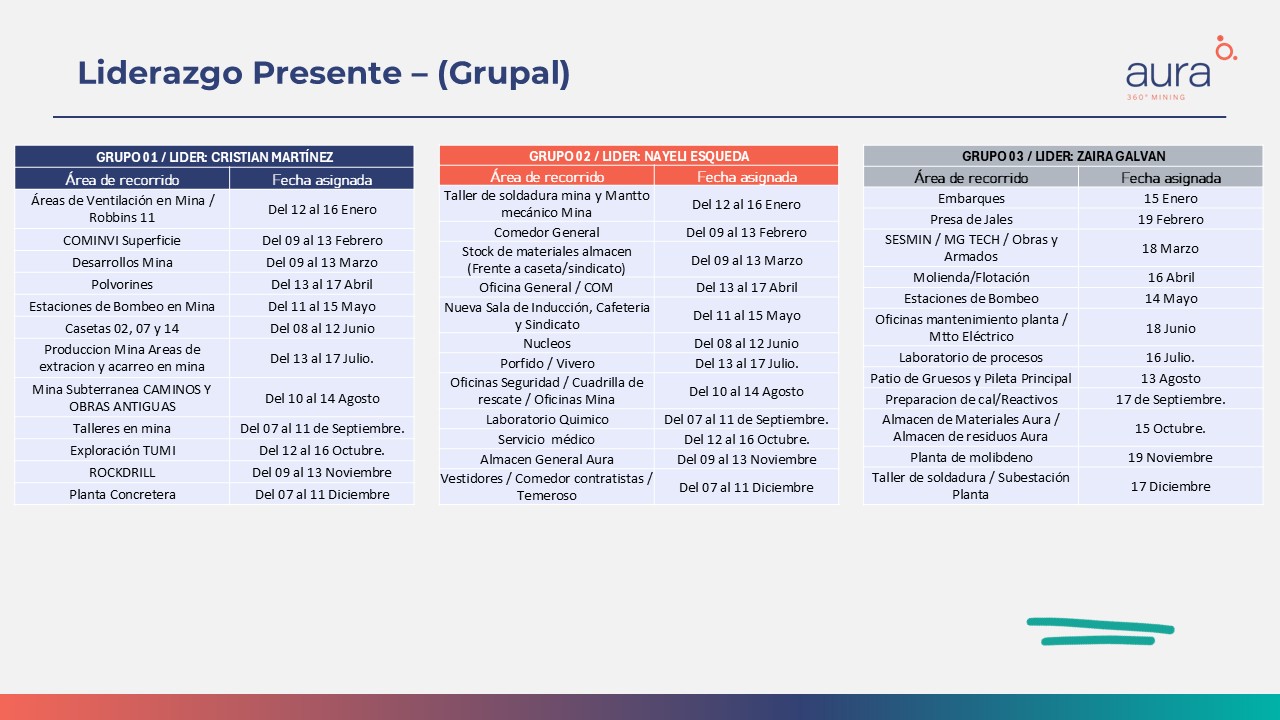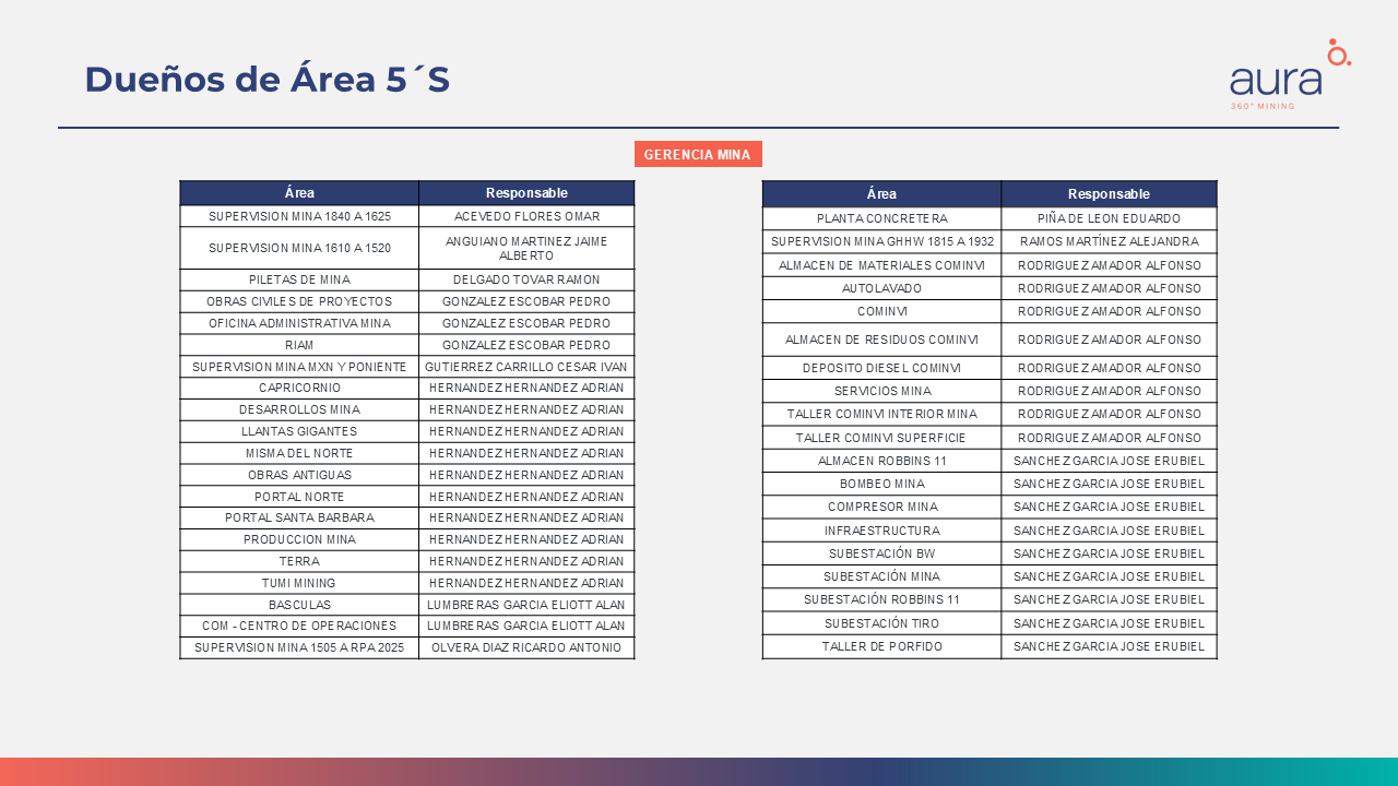 | 4 | PLANTA/ PRESAS JALES/ EB | 10/11 | OPERACION MINA |